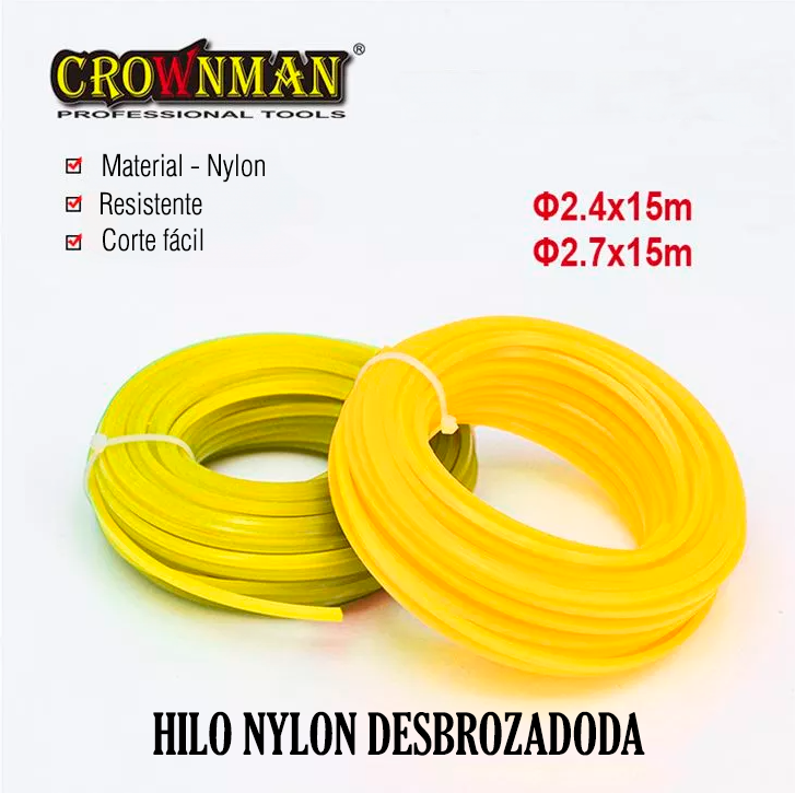 Hilo de recortadora1. Hilo de corte CROWNMAN fabricado con material de nailon.2. Es una línea de forma rectangular, más fuerte, con mejor resistencia al desgaste y más Sharon.3. La eficiencia de trabajo de la línea de forma rectangular es mayor en un 20%, lo que le permite obtener cortes más limpios y rectos con menos esfuerzo que una línea de corte tradicional.4. Método de instalación: Primero, desmonte el cabezal de corte y enrolle el hilo. Nota: No enrolle en la dirección incorrecta. Segundo, fije primero un lado y comience a enrollar el otro. Tercero, instale el cabezal de corte después de enrollar y fijar el hilo. Cuarto, asegúrese de que sea compatible con los diferentes tipos de cabezales de corte.5. Se utiliza para el recorte profesional y la eliminación de las malas hierbas de las esquinas.